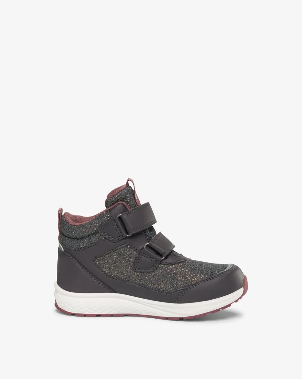 Bouncy Glitter Mid GTX 2V är glittrig, sportig och lätt och passar bra som övergångssko. Låt inte regn hindra ditt barn från att utforska. Det vattentäta GORE-TEX-membranet håller fötterna torra. Det glittriga, mjuka materialet i kragen skimrar och ger exceptionell komfort, och den stora stänkskärmen gör skorna enkla att rengöra genom att försiktigt torka bort lera och smuts. Skorna har dubbla kardborrefästen, så att de snabbt kan tas av och på och aktiva fötter sitter på plats. En lätt EVA-mellansula ger stötdämpning i varje steg, medan gummiyttersulan ger bra grepp på alla ytor.